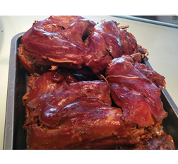 明明熏雞:傳統(tǒng)工藝(鐵鍋熬煮4-5小時(shí)),色澤紅潤,肉質(zhì)酥嫩。
